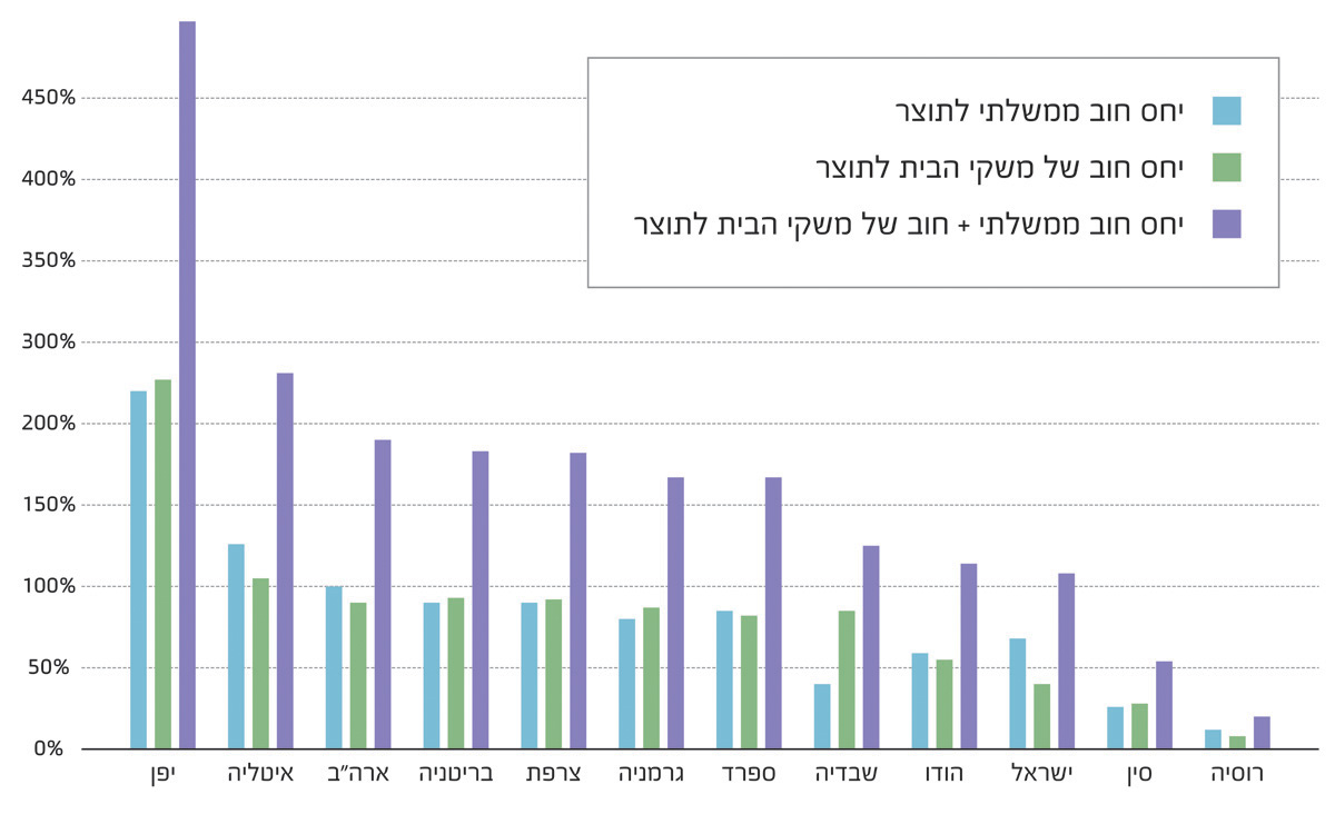 השוואה של חוב ממשלתי וחוב של משקי הבית לפי מדינה (2012) – למדינות המערב יש הרבה יותר חוב ביחס לשווקים המתעוררים.