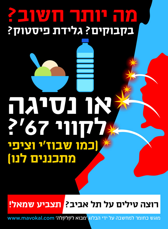 בכל פעם שאני משוחח עם מישהו מן השמאל (וזה קורה לעיתים קרובות, שכן יש לי הרבה חברים המשתייכים למחנה זה), אני נדהם לנוכח המשמעות המיסטית שהם מייחסים לקו הגבול ההוא. עבורם, הניצחון שלנו במלחמת ששת הימים הוא אם כל חטאת. זהו הרגע שבו המדינה התמימה והסוציאליסטית שלהם הפכה לענק קפיטליסטי ומזרה אימה. בדמיונם, אם רק נחזור לקווי 67' כל בעיותינו יתפוגגו בן רגע, עוני ומכאוב יעלמו מן העולם וכולנו נוכל לשבת בצוותא ולשיר "קומבאיה". כמובן שהם מעולם לא עוצרים לרגע על מנת להרהר מדוע מלכתחילה פרצה מלחמת ששת הימים (רמז – משום שקווי 67' אינם ברי הגנה…). הם גם מסרבים ללמוד את הלקח הכואב שהפקנו מן ה"התנתקות" – שכל שטח שממנו אנו נסוגים הופך מיידית לבסיס חדש לטרור האיסלמי.