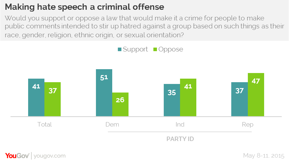 למרבה התדהמה, סקר שנערך לאחרונה מעלה כי מרבית האמריקאים תומכים בהטלת מגבלות על חופש הביטוי. רוב זה בולט במיוחד בקרב תומכי המפלגה הדמוקרטית.