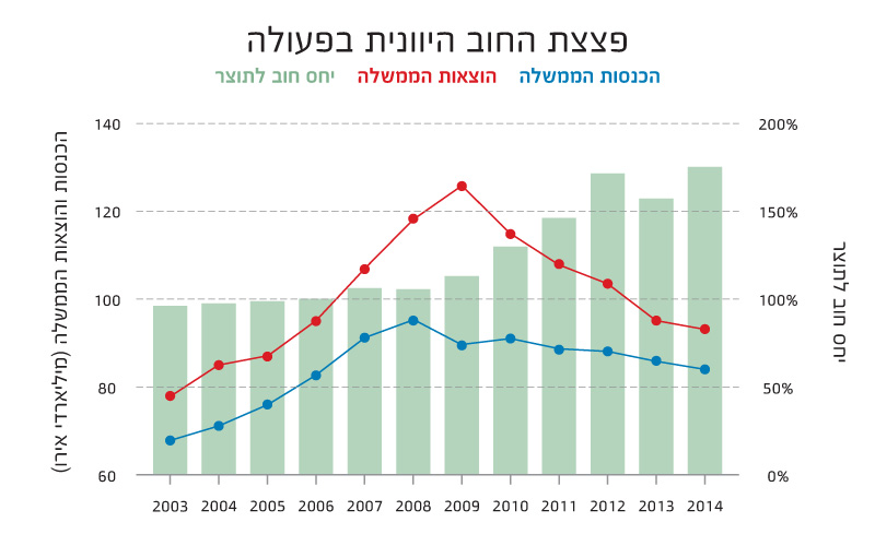 פצצת החוב היוונית בפעולה – ההכנסות ממסים צונחות, הוצאות הממשלה תופחות, ויחס החוב לתוצר יוצא מכלל שליטה.