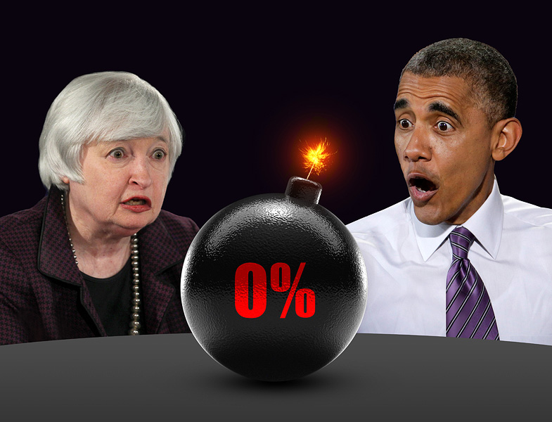 באשר לבורסות בוול סטריט, נראה שהן התנתקו לחלוטין ממה שמתרחש בכלכלה האמיתית. אף אחד מן הנתונים השליליים אשר התפרסמו בחודשים האחרונים, כמו למשל נתוני הצמיחה האנמיים, לא הצליח לפגום באופוריה אשר שררה שם עד לאחרונה. נדמה שהדבר היחיד שמסוגל היה לקלקל את החגיגה הוא האיום של פדרל רזרב להעלות סוף סוף את הריבית, וגם זאת בשיעור סמלי של רבע אחוז בלבד. כלכלת ארה"ב נעשתה כה תלויה במדיניות הריבית האפסית, שהיא אינה מסוגלת להתקיים בלעדיה. במציאות הנוכחית שבה הן הסקטור הציבורי והפרטי שרויים בחובות כה עצומים, כל העלאת ריבית צפויה לגרור מפולת מיידית."