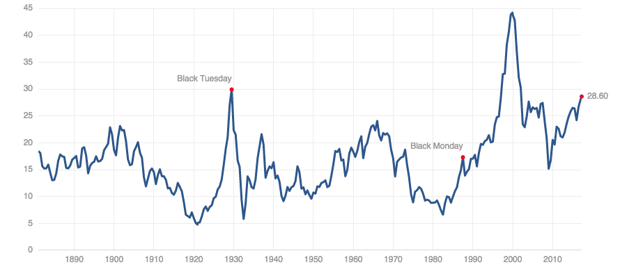 בעבר הזהרתי מעל דפי בלוג זה מפני הבועה ההולכת ומתהווה בשוק המניות, ובדיוק לפני שנה אף המלצתי לקוראי למכור את כל אחזקותיהם במניות, מחשש למפולת. בדיעבד היתה זו תחזית שגויה, אשר זיכתה אותי בלא מעט בוז וליגלוג, היות ולאחר פתיחת השנה הגרועה ביותר בתולדות מדד ה-S&P500 הוא חזר וטיפס, מסיים את השנה בתשואה גבוהה של קרוב ל-10%. האם היתה זו טעות להזהיר מפני המצב בשוק המניות בתחילת 2016, כאשר מכפיל שילר עמד על 25 "בלבד"? לדעתי התשובה לכך היא לאו. השוק היה "שמן מדי" כבר אז, ומאז הוא רק השמין עוד יותר. כתוצאה מכך הסיכון למפולת בשוק המניות רק הלך וגבר.