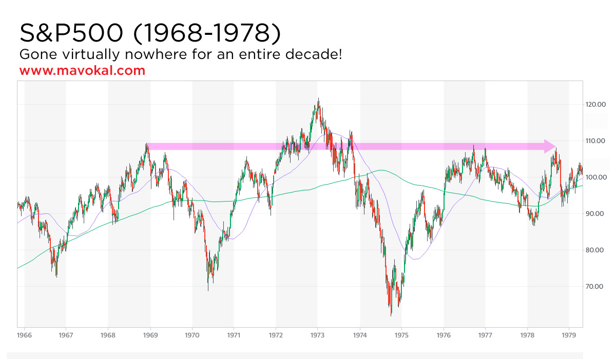 למען הסר ספק, לא מדובר במדע בדיוני. העולם הפיננסי כבר נקלע למצב כזה בעבר, במהלך שנות השבעים העגומות. באותה התקופה הכלכלה העולמית נתקלה בשילוב שעד אז נחשב לבלתי אפשרי – מיתון ואינפלציה בו זמנית, מה שמכונה סטגפלציה. במהלך אותו העשור מדד ה-S&P500 לא התקדם כלל. הוא עמד על 110 נקודות בסוף 1968, ירד ל-70 נקודות, עלה ל-120 נקודות, ירד שוב ל-70 נקודות, ועד סוף 1978 חזר ל-110, כלומר לאותה הנקודה ממנה יצא עשר שנים קודם לכן. במהלך אותה התקופה האינפלציה עמדה על 7% בממוצע, כלומר מי שהחזיק במניות במהלך אותה התקופה הפסיד מבחינה ריאלית 7% מכספו שנה אחר שנה! מה לגבי האג״ח? במהלך תקופה זו התשואה על אגרת החוב ל-10 שנים של ממשלת ארה״ב עלתה מ-6% ל-8%, כלומר מחירן ירד משמעותית. בשורה התחתונה, כל מי שחילק את כספו בין מניות ואג״ח ממשלתי באותה התקופה לא רק שלא הרוויח, אלא הפסיד את מרבית הונו למס האינפלציה.