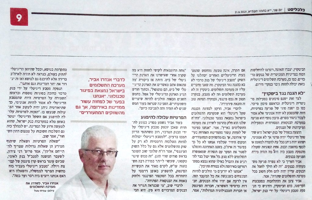 לפני כשבועיים פורסם בעיתון ׳כלכליסט׳ ראיון אפרורי למראה עם המשנה למנכ״ל בנק ישראל, אנדרו אביר, אשר בו היתה חבויה ידיעה מרעישה. מסתבר שבנק ישראל בוחן ברצינות את האפשרות להנפיק ׳שקל דיגיטלי׳, וכבר ערך פיילוט בנושא. הניסיון מלמד שבנקים מרכזיים נוהגים לפעול באופן שכזה. הם יודיעו לציבור על תוכניותיהם באופן גלוי, כדי שלא ניתן יהיה להאשים אותם בהסתרה, אולם ישתמשו בז׳רגון מקצועי עמום, כך שרק יודעי חן יבינו את כוונותיהם האמיתיות. קוראים לזה ׳בלון ניסוי׳, והוא נועד על מנת לבחון את התגובה הציבורית למהלך. אם לא תתעורר מחאה ציבורית, בנק ישראל יראה בכך אישור להמשיך הלאה.